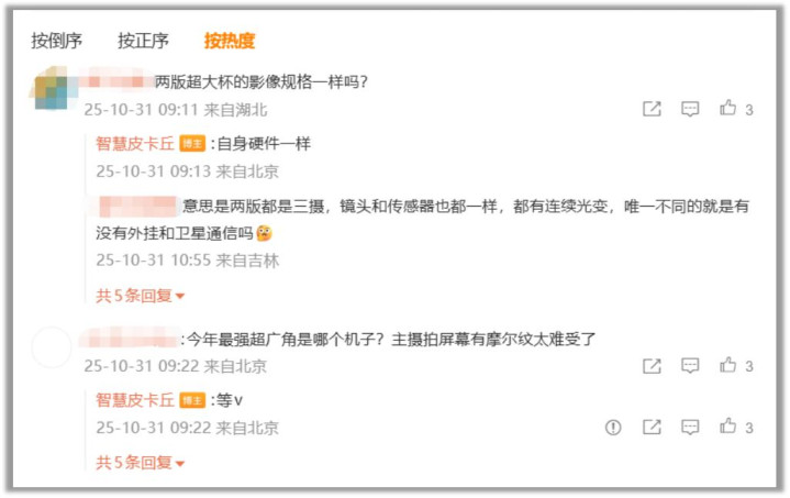 另一位爆料者在评论区表示,小米17 Ultra将使用新的OV50X一英寸传感器,支持8K视频录制和单曝光HDR技术。它能够有效地维持高动态范围和清晰度,即使在昏暗光线下也不例外。 小米17 Ultra可能将于今年年底在发布舞台上亮相,而荣耀正致力于用一款新旗舰在市场上给予该设备激烈的竞争。猜测没错,这款新的顶级手机正是Magic 8 Ultra。